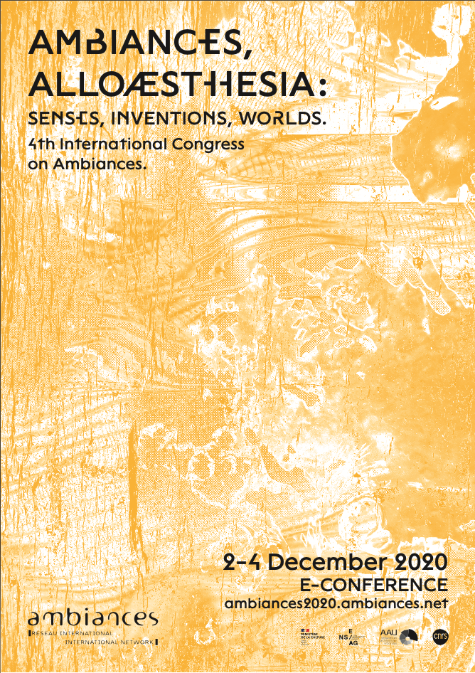 The topic of ambiances and atmospheres has carried out its deployment for more than four decades, and the questions associated with it are constantly being renewed. The vitality of ambiance/atmosphere as an object of study and as a field of research and practice is particularly sensitive through the continuous development of the International Ambiances Network, with more than a thousand members spread over all continents, and belonging to disciplines ranging from Architecture and Urban Design, to Social Sciences, Engineering Sciences, Arts and Humanities. Entitled "Ambiances, Alloaesthesia: Senses, Inventions, Worlds" focuses on the renewal of the forms of feeling in a world that is undergoing major changes.